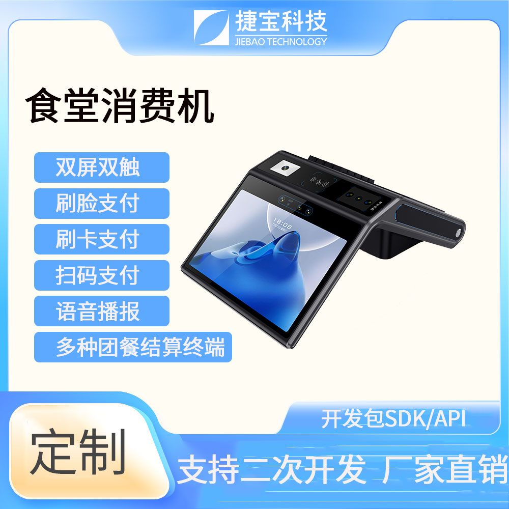捷寶科技是國內最早推出基于Android系統智能硬件的廠家之一。產品形態涵蓋手持、臺式、立式、掛式、柜式、單屏、雙屏;功能上圍繞NFC識別、條碼識別、生物識別,AI識別等技術大類,開發出可識別CPU卡、M1卡、射頻卡、二代身份證、社??ā⒁痪S條碼掃描、掃碼支付、指紋識別、人臉識別、掌靜脈識別、虹膜識別、AI菜品識別、智能語音識別等功能的各類產品。
